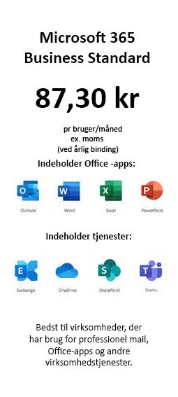 Microsoft 365 Business Standard licens giver dig følgende funktioner: